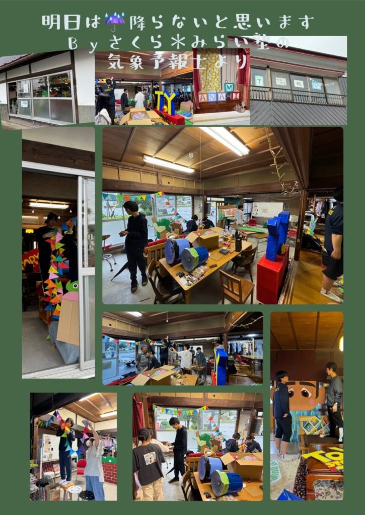 7月13日はつながる縁日です! 2024 7/12 ブログ 2024年7月12日 今日は「UT駅前つながる縁日」のために準備をしました。 明日は楽しいことがいっぱいです。みなさん遊びに来てくださいね! そうそう、気になるお天気ですが、「明日は降らないと思います」BYさくら*みらい塾の気象予報士 ブログ URLをコピーしました! 7月9日の〇〇の部屋と(有)KMTさん 【ご報告】第3回UT駅前つながる縁日with南宮神社宵祭
