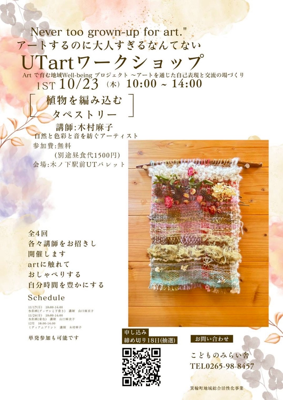 第1弾は「植物を編み込むタペストリー」講師は自然と色彩と音を紡ぐアーティスト、木村麻子さん。